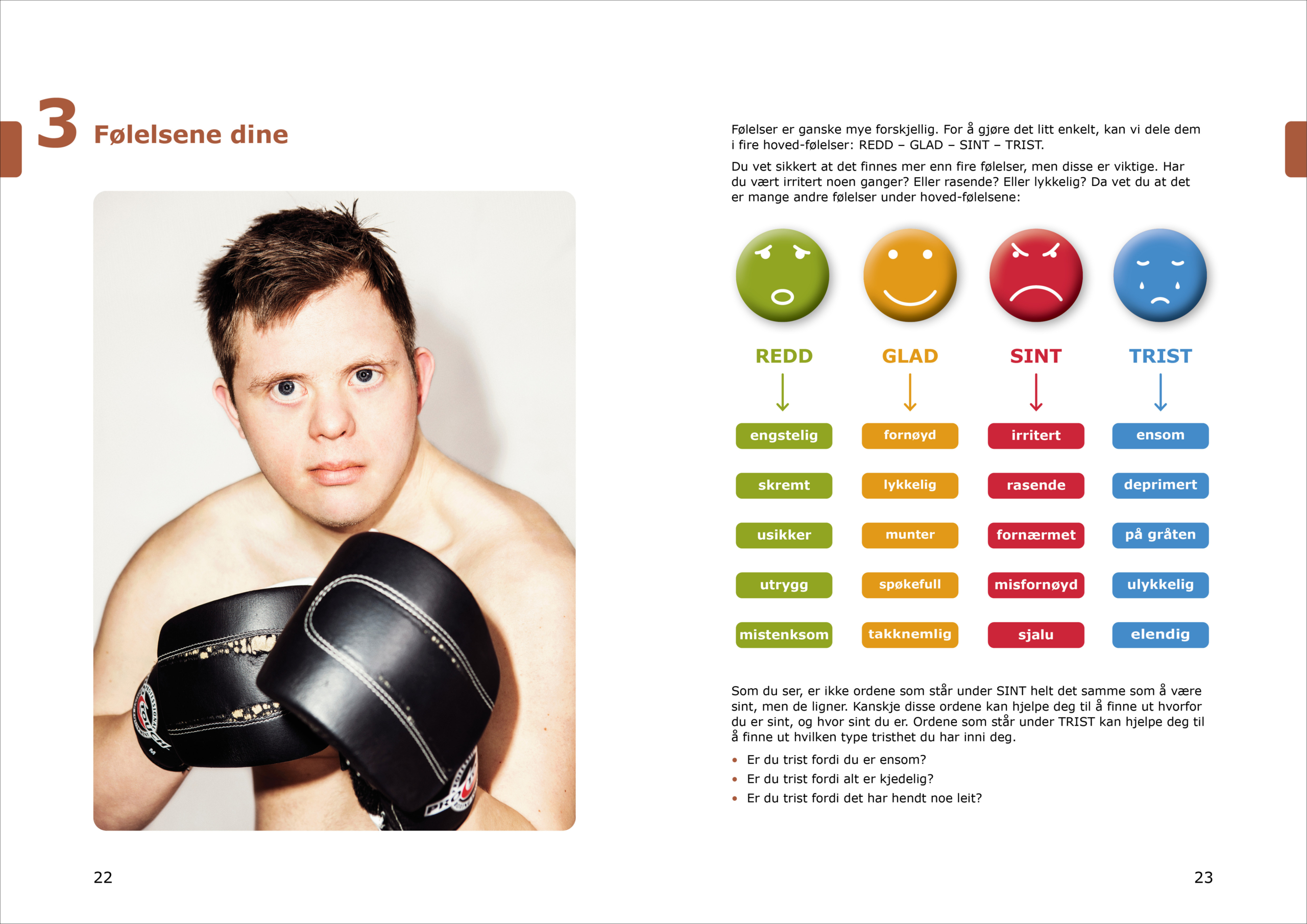 En bok for alle som er unge/voksne, og som har utviklingshemming eller lærevansker. Det er en stor (A4) og praktisk arbeidsbok med spennende oppgaver, fargerike bilder og tydelig skrift. Den kan fint brukes alene, men passer også godt til klasser, klubber og grupper som vil jobbe sammen om de ulike temaene. Den er også svært nyttig for fagpersoner og foresatte som ønsker å forstå mer og å bidra til at unge/voksne i denne gruppen får brukt sitt potensiale for læring derved får økt trygghet og selvstendighet.